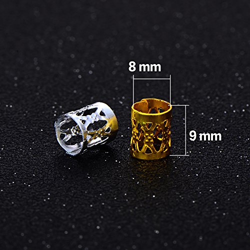 50 Pieces aluminum dreadlocks beads metal cuffs and 50 pieces braid hair clip accessories, total 100 pieces hair decoration braiding hair jewelry, multiple styles 100 Pieces Hair jewelry rings decorations: Aluminum dreadlocks rings are good tools for hair extension, braiding dreadlocks; Other different style hair clips are suitable for party, fashion show, photo, wedding, bridal, etc.. Also as a gift for your ladybro, mother, sisters, girlfriends, and close friends. Easy to use: Braid your hair in desired style, then open a ring and insert rings at desired location on your braid, close the clips with fingers, not need pliers. Wide applications: These hair decoration accessories can be applied on all kinds of hair styles, braids, extensions, updos, dreads, suitable for party, fashion show, photo, wedding, bridal, prom and more, make you more attractive in various occasions. Specifications: Dreadlocks beads metal cuffs: Quantity: 50 pieces Size: 0.8 cm/ 0.31 inch in diameter and 0.9 cm/ 0.35 inch in height Material: aluminum Color: golden, silvery Hair rings: Quantity: 30 pieces Diameter: 14 mm/ 0.55 inch Material: metal with electrical plating Color: golden, silvery, KC golden DIY hair braid ring pendants: Pendant patterns: shells, bells, leaves, christian cross; Each style 5 pieces, 20 pieces in total Package includes: 25 x Golden Dreadlocks beads metal cuffs 25 x Silvery Dreadlocks beads metal cuffs 5 x Shells hair ring pendants 5 x Bells hair ring pendants 5 x Leaves hair ring pendants 5 x Christian cross hair ring pendants 10 x Golden hair rings 10 x Silvery hair rings 10 x KC golden hair rings Note: Small items, please keep them away from children under 3 years old. 0