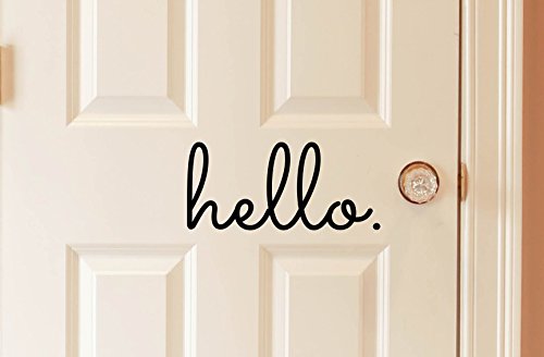 Hello in Cursive Indoor/Outdoor Lettering Wall Art Decor Sticker Vinyl for Door 5" X 11" (Black, Matte)