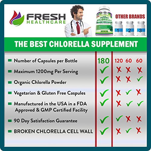 Fresh Healthcare Organic Chlorella (180 Capsules) ✮ Natural Detox Superfood with Chlorophyll, Fortifies Natural Energy & Vitality ✮ Antioxidants to...