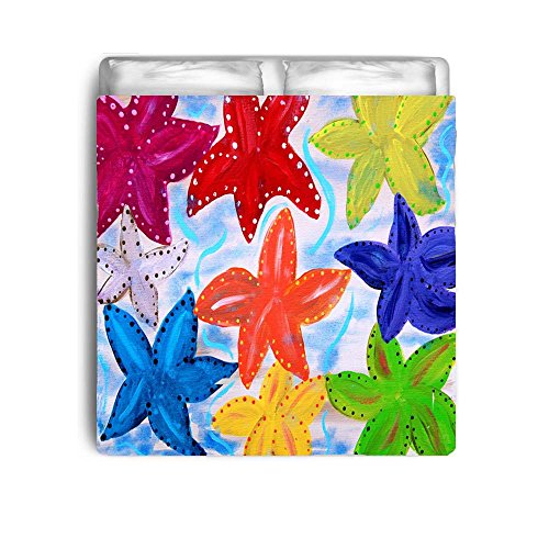 Product Description Multi colorful Starfish Art will appear on the top side, which is made from a soft 100% Micro fleece fabric. Bottom side is made from a breathable 320 thread count Sateen white cotton. Each comforter is fully stuffed with a down alternative filling for maximum comforter. Eco friendly water based dye is used which will not fade or alter the texture. Made in the USA 0
