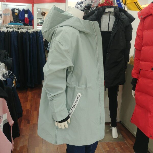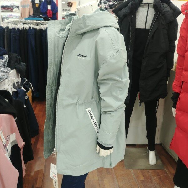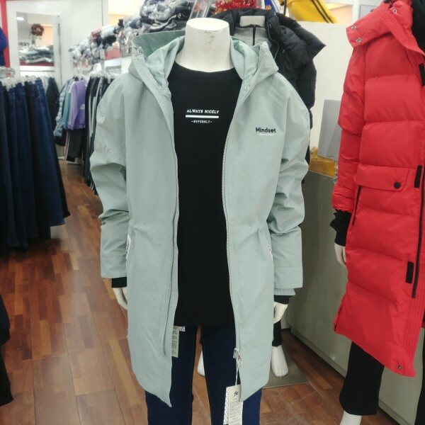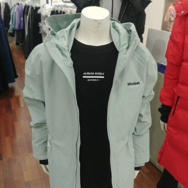 어머나 기대 이상으로 예쁜 민트 칼라의 점퍼입니다. 길이감은 롱~~~입니다.안감의 얇은 조끼형 내피가 있어 어중간한 겨을 끝 자락과 봄날의 변덕스러움에 매우 적합한 점퍼입니다.