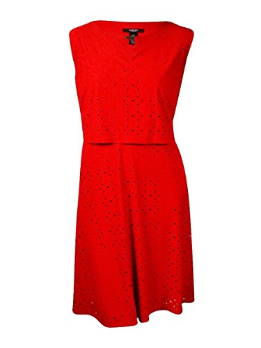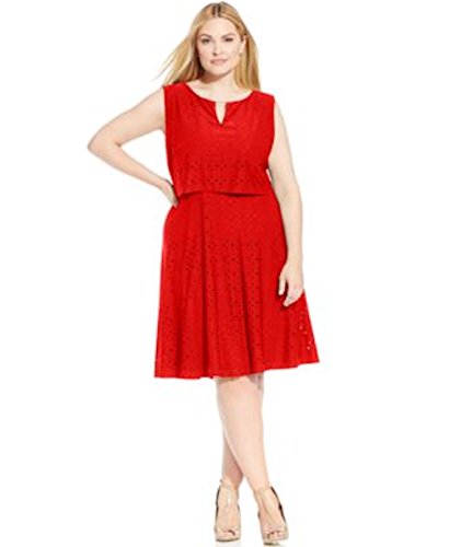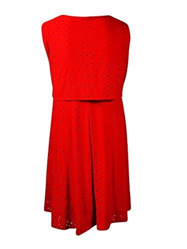 Dress features full lining, round neckline, sleeveless, keyhole neckline, eyelet jersey fabric, popover top, and pullover style.