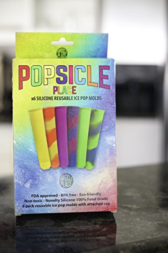 Popsicle Place - Silicone Popsicle Molds BPA-free - Set of 6 Reusable Ice Pop Maker with Attached Lids Plus 50 Recipes E book