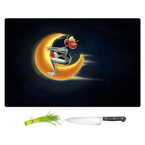 DiaNoche Designs CB-TooshtooshCrazyMoonCow2 Tooshtoosh Crazy Moon Cow Cutting Boards from, Large 15" x 11"