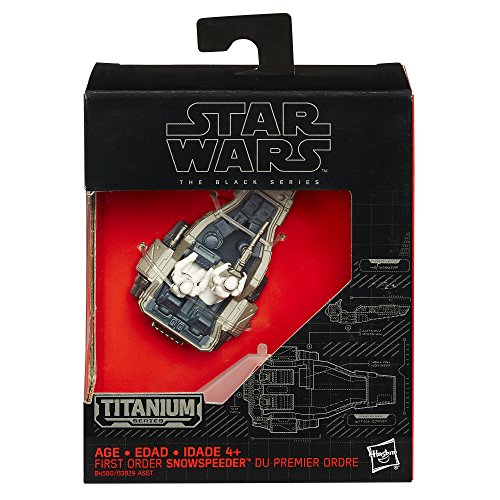 -. Binding : Toy -. Brand : Star Wars -. EAN : 0630509362493 -. Feature : Stand helps simulate hovering effect / Re-create favorite battles from the Star Wars universe / Expand and enhance Star Wars collections / Detailed vehicle looks just like the one in Star Wars: The Force Awakens / Includes vehicle and stand. -. Label : Hasbro -. LegalDisclaimer : Except as expressly set forth in the item description, seller makes no express or implied warranties of any kind whatsoever about this merchandise. Seller is not responsible for consequential, incidental or punitive damages of any kind whatsoever. Seller's liability is limited to the amount paid by buyer including shipping/handling charges. IN NO EVENT, REGARDLESS OF CAUSE, SHALL ONLINE GOODIES BE LIABLE FOR ANY INDIRECT, SPECIAL, INCIDENTAL, PUNITIVE OR CONSEQUENTIAL DAMAGES OF ANY KIND, WHETHER ARISING UNDER BREACH OF CONTRACT, TORT (INCLUDING NEGLIGENCE), STRICT LIABILITY OR OTHERWISE, AND WHETHER BASED ON THIS AGREEMENT OR OTHERWISE, EVEN IF ADVISED OF THE POSSIBILITY OF SUCH DAMAGES. -. Manufacturer : Hasbro -. Model : B4580AS0 -. MPN : B4580AS0 -. PackageQuantity : 1 -. PartNumber : B4580AS0 -. ProductGroup : Toy -. ProductTypeName : TOYS_AND_GAMES -. Publisher : Hasbro -. Studio : Hasbro -. Title : Star Wars: The Force Awakens Black Series Titanium First Order Snowspeeder -. UPC : 630509362493 -. Warranty : No Warranty