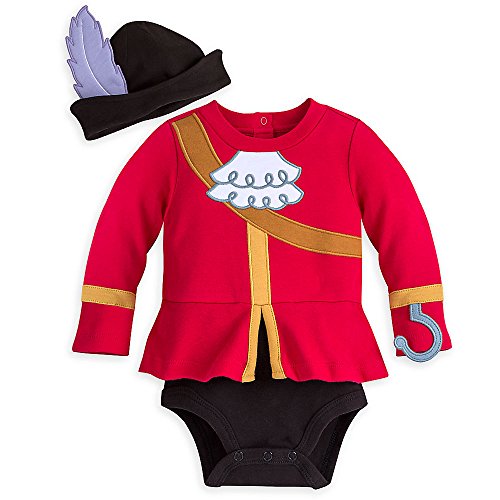 -. Binding : Apparel -. Brand : Disney -. Color : Red -. Department : baby-boys -. Feature : Genuine, Original, Authentic Disney Store / Costume includes bodysuit and hat / Bodysuit features embroidered elements / Split front peplum -. Model : 4042046860418200 -. ProductGroup : Apparel -. ProductTypeName : SHIRT -. Title : Disney Captain Hook Costume Bodysuit for Baby - Red