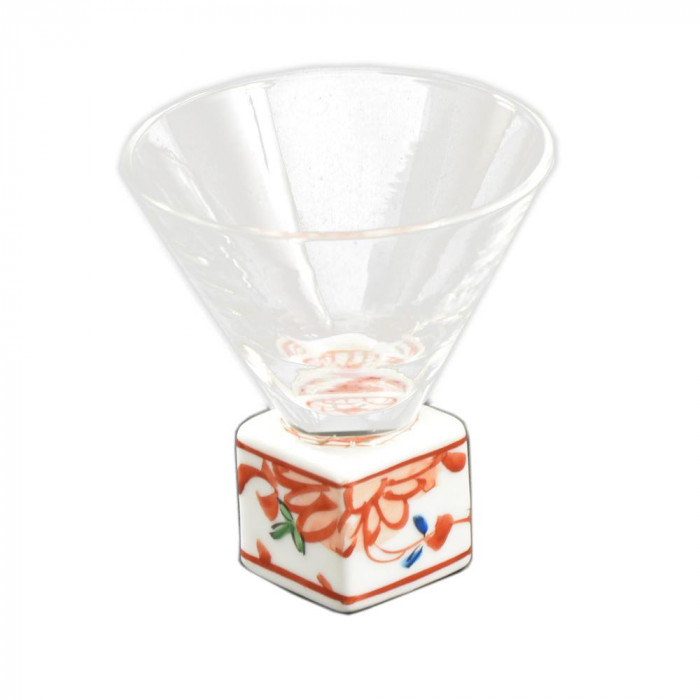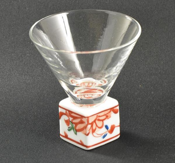 ガラスの透明性と有田焼の美しさが結びついたグラス。モダンな絵柄はひとつひとつ職人さんの手描きです。 製造国:脚部:日本、グラス:中国 素材・材質:脚部:磁器(有田焼)グラス:ガラス 商品サイズ:約Φ85×H85mm 仕様:容量:80cc電子レンジ使用不可食洗機使用不可 ※サプライヤー直送品 ご注文後3~4営業日後の出荷となります【商品名】有田焼 福泉窯 有田浪漫グラス SAKE GLASS 正角 赤絵錦剣先万歴