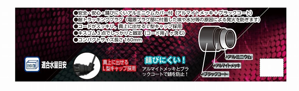 With aluminum + alumite plating + black coat with secure heater cover to prevent rust.