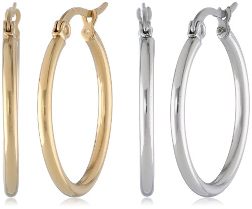 - Title : Pack of 2 20mm In Stainless Steel, 18K Gold Plated, Top Click Closure Hoop Earrings