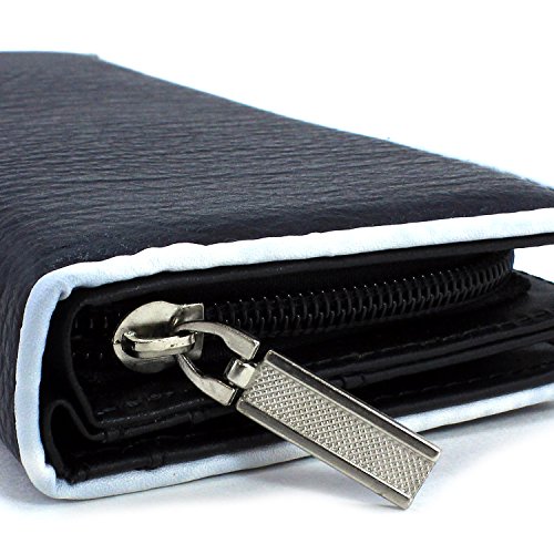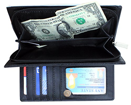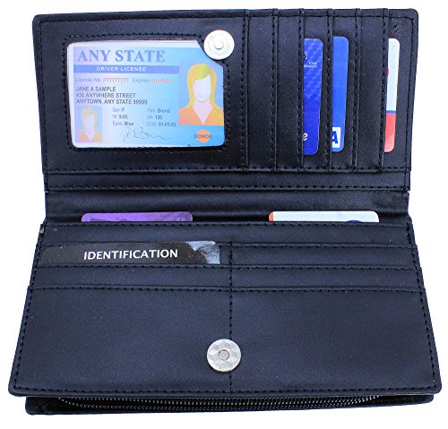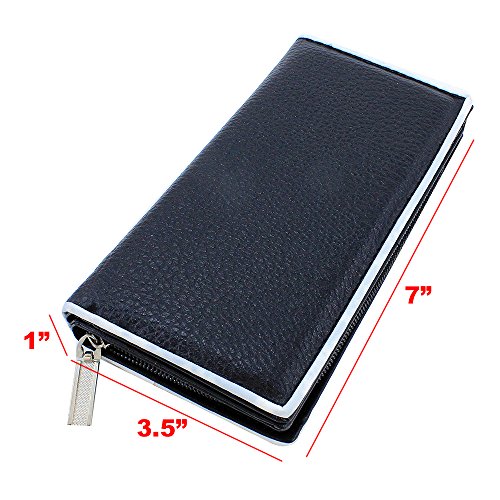 -. Feature : Women's Fashion Clutch Bifold Style Vegan Wallet / Zip and Magnetic Snap Closures / Dual Slot Side Compartment / PVC Leather Material with Polyurethane (Synthetic / Vegan) / 11 Credit Card Slots, 1 Large Slot Pockets, ID Window