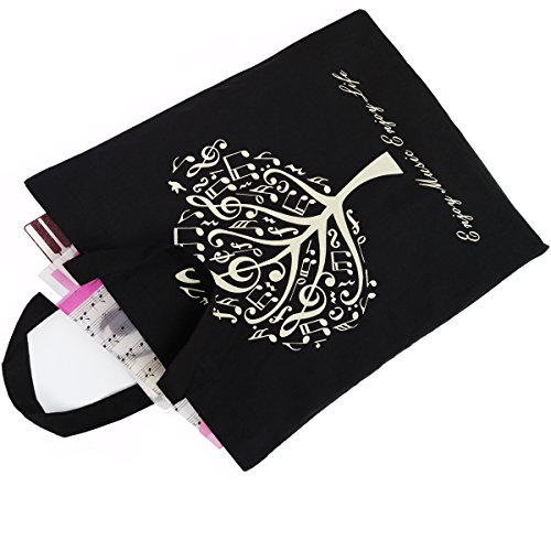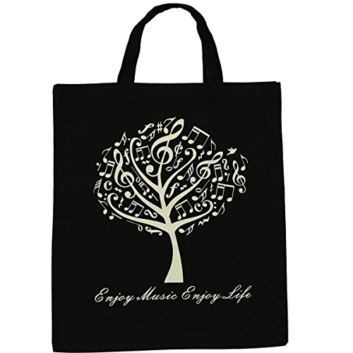 WOGOD Music Element Bag & Tote Bag & High Density Thin Cotton Bag - Cotton Shopping Bags Reusable (Tree black)