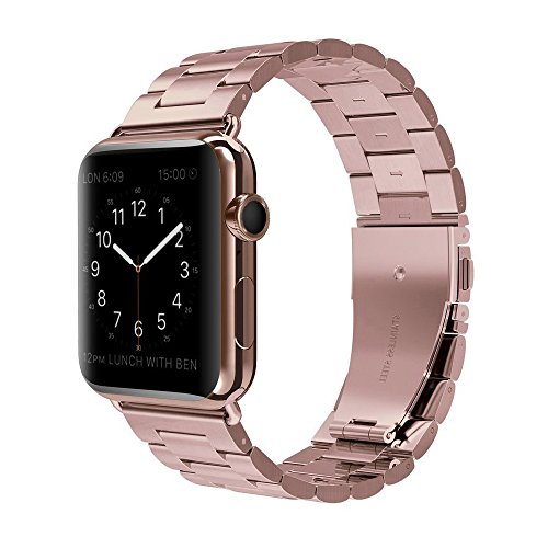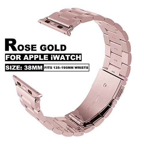 Apple Watch Band, Men / Women Stainless Steel Sport Folding Clasp Smart Watch Replacement Bands for Apple iWatch 38mm - Rose Gold