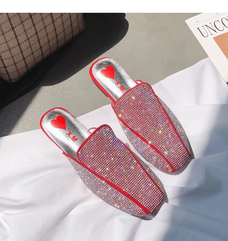 Luxury Flat Slippers Women:Women Rhinestone Mules