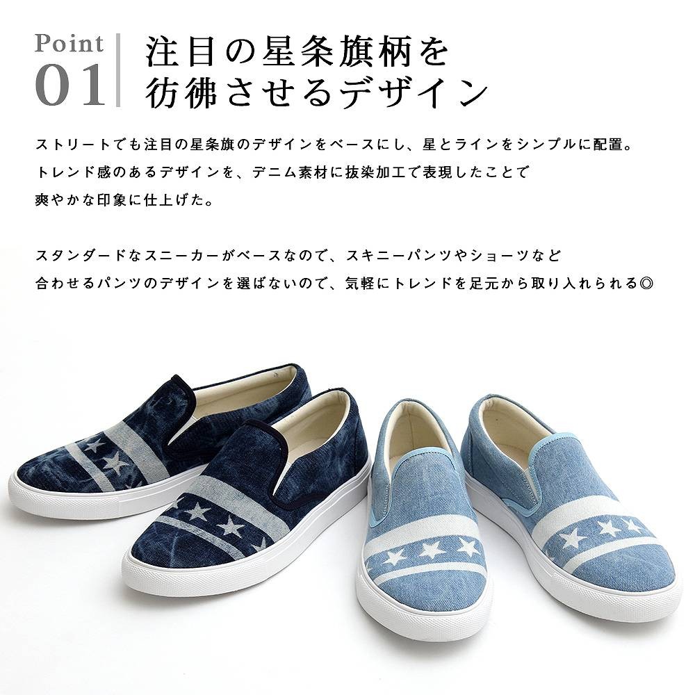 | 商品名 | デニムスニーカー デニム スリッポンスニーカー メンズスリッポン スリッポン デニムシューズ メンズ カジュアル 抜染加工 ケミカル加工 ローカット |