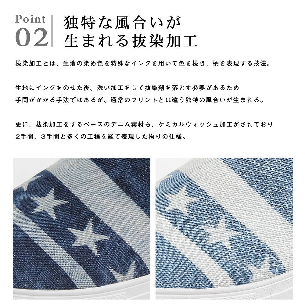 | 商品説明 | "トレンド感が魅力のデニムスリッポン" 注目の星条旗柄を彷彿させるデザインを、デニムの抜染加工で柄を表現した 、トレンド感と清涼感を併せ持つスリッポンスニーカー。 ストリートでも注目の星条旗のデザインをベースにし、星とラインをシンプルに配置。 ケミカルウォッシュを施こしたデニム素材に、 さらに抜染加工で柄を表現するという手間のかかる工程を経て作り上げた逸品。 スタンダードなスニーカーがベースなので、合わせやすくトレンドを取り入れられるデザイン。 ライニングやインソールには生成りのコットン素材を使用し、 カジュアルな風合いにプラスして、蒸れにくい履き心地を実現した。 星条旗風のデザインや、ケミカルウォッシュのデニム、抜染加工など、 トレンド感を詰め込んだ"glabella"イチ押しスニーカー。 |