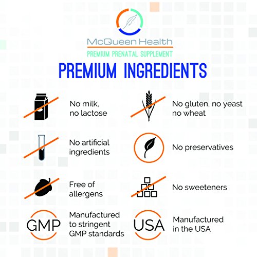 - Feature : PREMIUM PRENATAL VITAMINS is packed with all the best essential nutrients for complete pregnancy support FOR LESS THAN $1 A DAY! Scientifically formulated in a FDA REGISTERED FACILITY to provide OPTIMUM pregnancy fitness and support for both Mom and Baby. Click ADD TO CART NOW to order your first 3 MONTHS SUPPLY. / THE BEST PRENATAL VITAMINS contain all essential vitamins and minerals for OPTIMUM PREGNANCY NUTRITION: >>>JUST ONE TABLET A DAY contains the RECOMMENDED DAILY AMOUNT of Folic Acid 800mcg (folate), Iron 28mg, Zinc 25mg, Vitamin B12, Calcium & Vitamin d! All necessary components to ensure you are the best you can be and able to give all the necessary nutrients to your little miracle. / OUR BEST MULTIVITAMIN PREMIUM PRE NATAL can be used throughout trying for a baby,conception, pregnancy and during breastfeeding. It can be used during BREASTFEEDING to support the growing baby's needs and the mother's health and wellbeing during this important time. Maintaining optimum health is considered to be essential to ensure mom is fully supported during pregnancy symptoms such as morning sickness. / SCIENTIFICALLY FORMULATED AND PURITY GUARANTEED -Premium prenatal is free from Wheat, Dairy, Gluten, Yeast & Sugar which ensures they are suitable for mothers with allergies or intolerances too. They are MADE IN THE USA in a GMP registered facility and MCQUEEN HEALTH only supplies the highest quality supplements. / 100% SATISFACTION OR YOUR MONEY BACK-We want complete customer satisfaction and so we offer full MONEY BACK GUARANTEE if you are not satisfied. We are here to help and so offer full support to mothers to be, along their wonderful journey into motherhood and beyond.