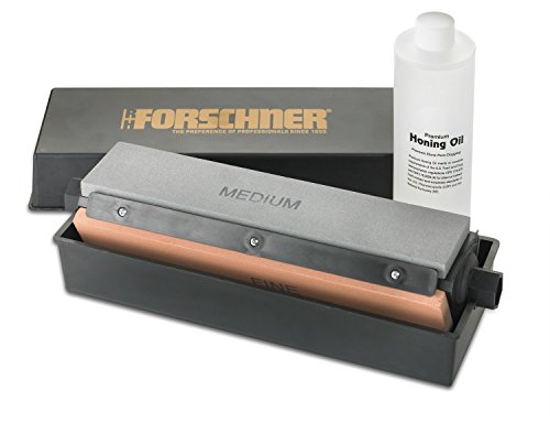 Victorinox, makers of the original Swiss army knife, has been crafting fine cutlery since the later 1800''s. 3-Way Sharpening System with Coarse, Medium and Fine sharpening stones and 1 pint of Honing Oil. 11-1/2-inch reservoir and cover.