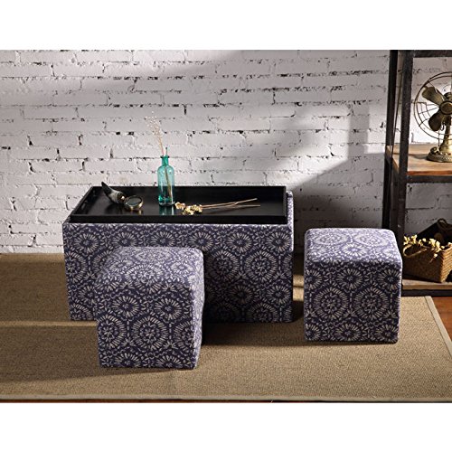 -. Title : Creative Living 3 Piece Storage Bench and Ottoman Set - Blue