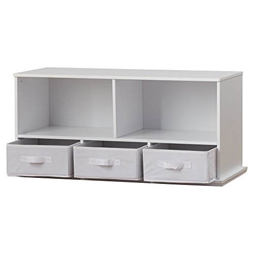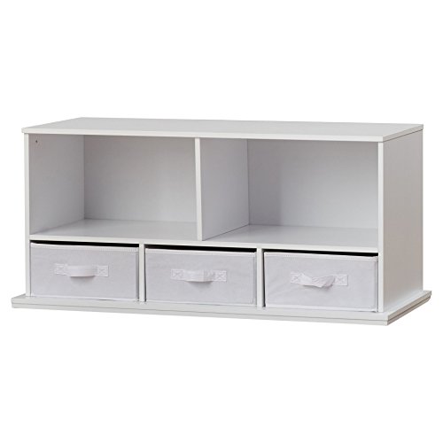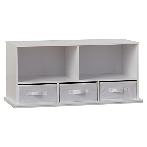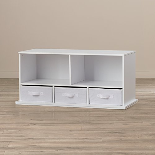 -. Feature : Features two, generously sized open shelves and three baskets. Shelves are handy for books, magazines, toys, clothes, linens, shoes, VHS/DVDs, video games, and more. Multiple units can be stacked / The three baskets are ideal for sorting and separating small items like craft supplies and small toys and for keeping them organized and out of site. / Convenient handles on the baskets make it easy to access them as you search for a favorite toy or want to quickly grab your mittens. / Baskets can be removed from the shelf unit for use anywhere in the house. With the baskets removed, you have three open cubbies convenient for shoes, knick knacks, books, etc. / Wipe the wood surfaces clean with a lightly dampened cloth and mild detergent as needed and dry thoroughly. Baskets fold flat for storage if you don't want to use them. Simply remove the bottom panel and collapse the sides.