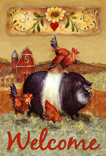 Toland Home Garden Farm Field Welcome 28 x 40 Inch Decorative Rustic Country Barnyard Animal Pig Rooster House Flag