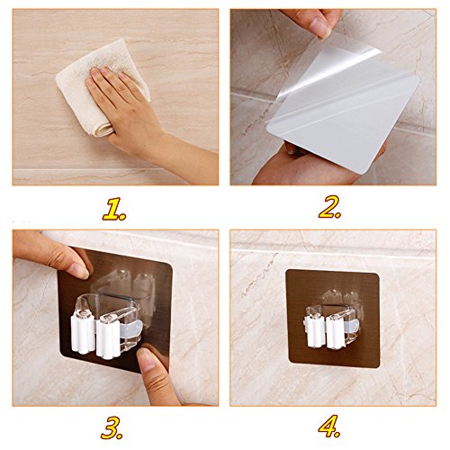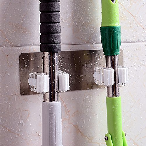 Reusable Powerful Adhesive Mop and Broom wall Mounted Storage Rack/Holder by Rekukos
