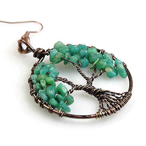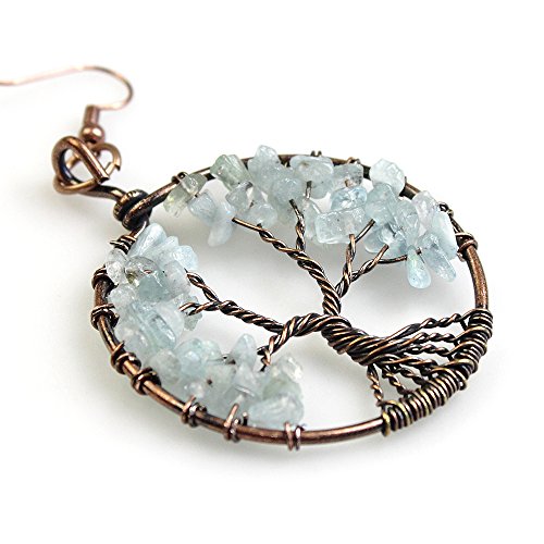 -. Title : BAYUEBA Dangle Earrings Tree of Life Amethyst Rose Crystal Chakra Gemstone Jewelry