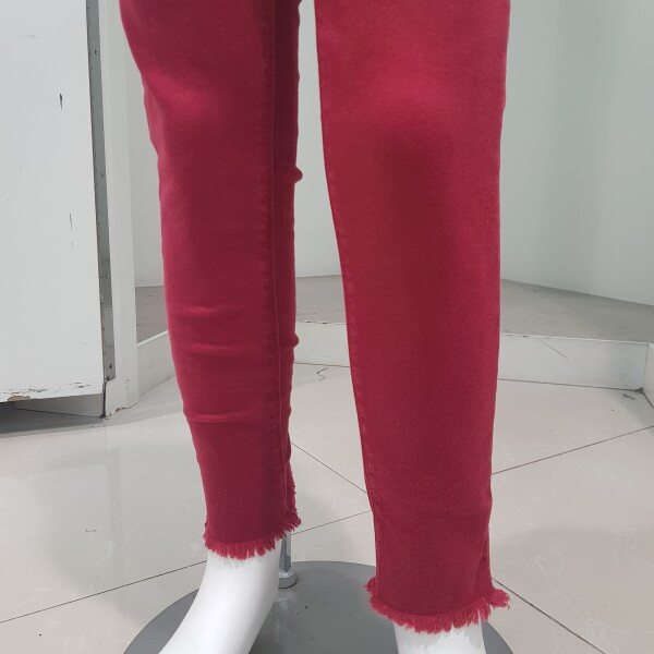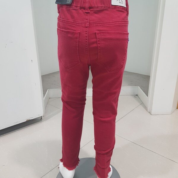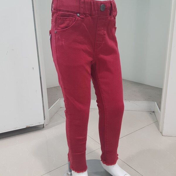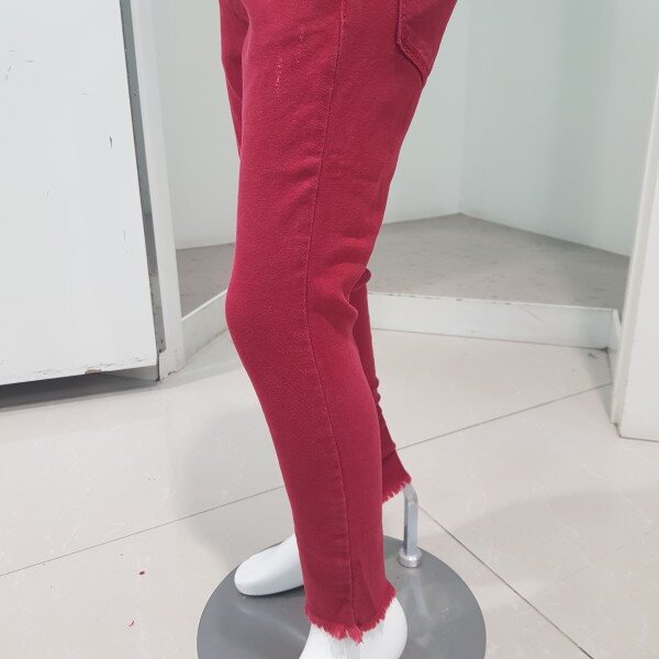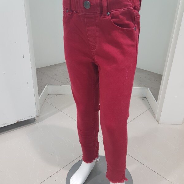 2018 F/W 신상.여아 레드컬러 워싱 밑단 변형 스키니핏 데님 팬츠 입니다.