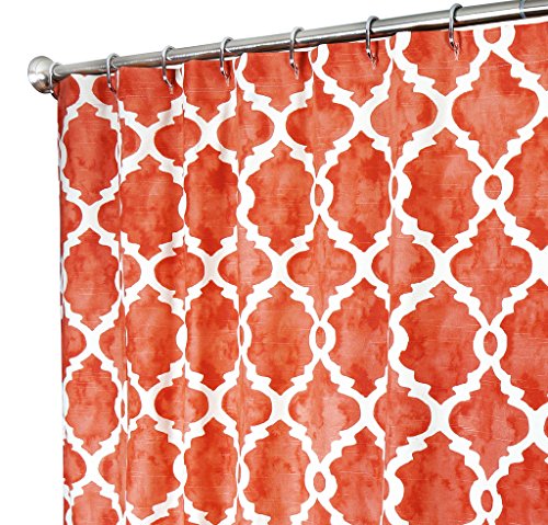 Extra Long Shower Curtain Designer Fabric Coral Red Print Hand Painted Look Unique 72"x 96"