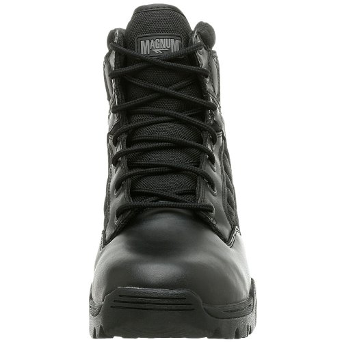 Product Description Men's Magnum 6" Response II Boots pack in the features without blowing the budget! Here's a top-quality duty boot any working guy can afford. The Magnum 6" Response II packs all the full-on duty boot construction Magnum is famous for including cushioning, high traction outsole, lightweight-yet-strong leather and nylon upper and steel shank so you can chase bad guys with complete stability. Details: Quality action leather upper with 900 denier nylon underlay for lightweight durability; High-traction, slip-resistant outsole; Comfort contoured removable sockliner; Supportive steel shank; Moisture-wicking lining; Gusseted tongue keeps debris out; Bluecher lace system goes further dow on the toe for more stability... 7 eyelets; Each approx. 6"h, 22 1/2 oz.; Made to stand up to the most demanding situations without breaking the bank. State Width and Size. Order Today! Men's Hi-Tec Magnum 6" Response II Boots
