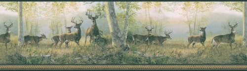 -. Title : Brewster 145B03853 Northwoods Lodge Running Black Deer Border Wallpaper