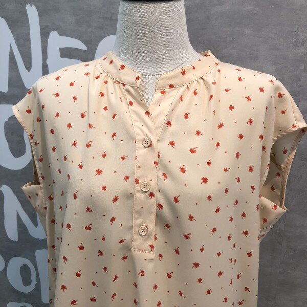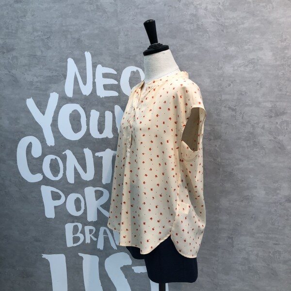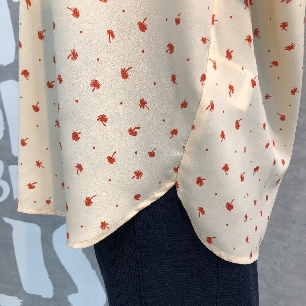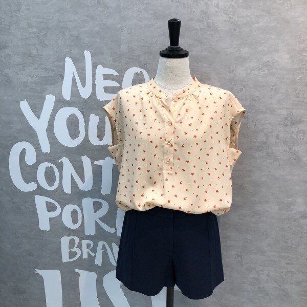 여유있게 떨어지는 루즈한핏이 멋스러우며 솔리드컬러의 모던한 오픈넥 블라우스입니다