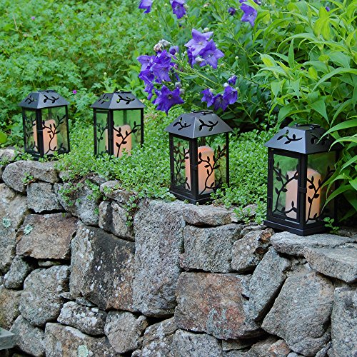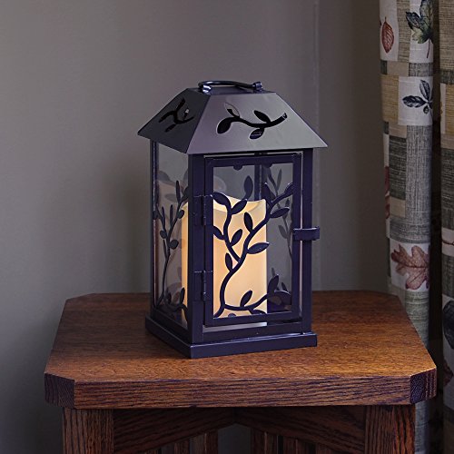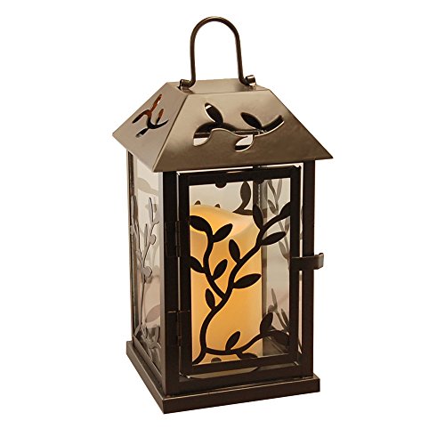 LumaBase 90001 Vine Metal Lantern with LED Candle, Warm Black
