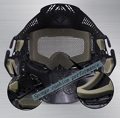 -. Feature : Used to provide 100 %protection,Strong anti-impulse performance / Material : The main body is made of ABS plastic, Made of steel mesh material is eco - friendly low carbon steell / Reliable buffer,When subject to external shocks, the impact will be through the sponge pad average distributed orbital location of to the consumer, Effective in reducing damage to the glasses / Supporting mouth plate adopts advanced two - layer filtration system, can effectively prevent the paintball hits supporting the mouth behind the plate, broken water to meet the mouth / This product by ANSIZ80.3 falling ball test at -10~42° temperature, impact resistance of at least 700fps