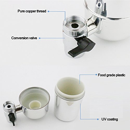 Water filters provide better tasting and better smelling drinking water by removing chlorine and bacterial contaminants. Point-of-use water filters remove lead from drinking water immediately prior to consumption, thus preventing this harmful substance from entering the body. The purchase of a countertop filter results in a source of clean, healthy water that costs much less than bottled water. Water filters greatly reduce the risk of rectal cancer, colon cancer, and bladder cancer by removing chlorine and chlorine byproducts from drinking water. A solid block carbon water filter can selectively remove dangerous contaminants from drinking water while retaining healthy mineral deposits that balance the pH of drinking water. Drinking clean, filtered water protects the body from disease and leads to overall greater health. A water filter provides clean, healthy water for cooking, as well as drinking, at the convenience of tap water. Water filters reduce the risk of gastrointestinal disease by more than 33 percent by removing cryptosporidium and giardia from drinking water. Drinking pure water is especially important for children. Water filters provide the healthiest water for children's developing immune systems. Water filters offer the last line of defense between the body and the over 2100 known toxins that may be present in drinking water. Package Included: 1 x Manual 1 x22 Connector 1 x24 Connector 1 xUniversal connector 1 xWater proof padFeature