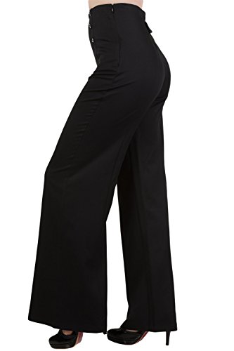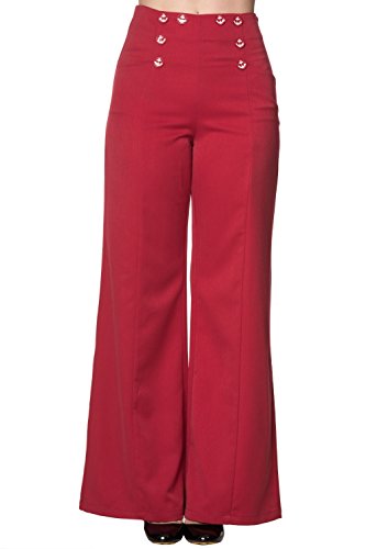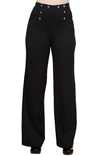 Binding : Apparel Product Description Ahoy, Vintage pinup Sailor girl ~~ This is a must have summer vintage sailor inspired trousers by Banned Apparel. Made of superb quality light weight cotton blend materials, wide leg bell bottoms style, decorative Anchor buttons on front, and functional side pockets. Side Zipper hook closure. These pants give you the perfect nautical sailor look and you can pair these pants with a pair of red high heels and you are good to go! Sizes Measurements: XS (Waist size 26" / Hip 34") , S (Waist 28" / Hip 36"), M (Waist 30" / Hip 38"), L (Waist 32" / Hip 40"), XL (Waist 34" / Hip 42")