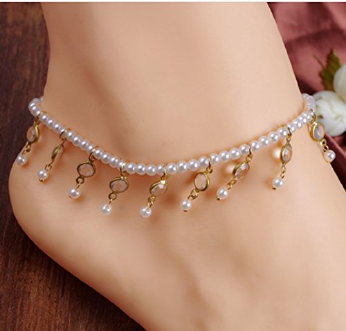 Leiothrix Vogue Bohemian Simple Multilayer White Beads Alloy Anklet for Women and Girls Apply to Party Beach Casual Photograph (2 pcs/ set)