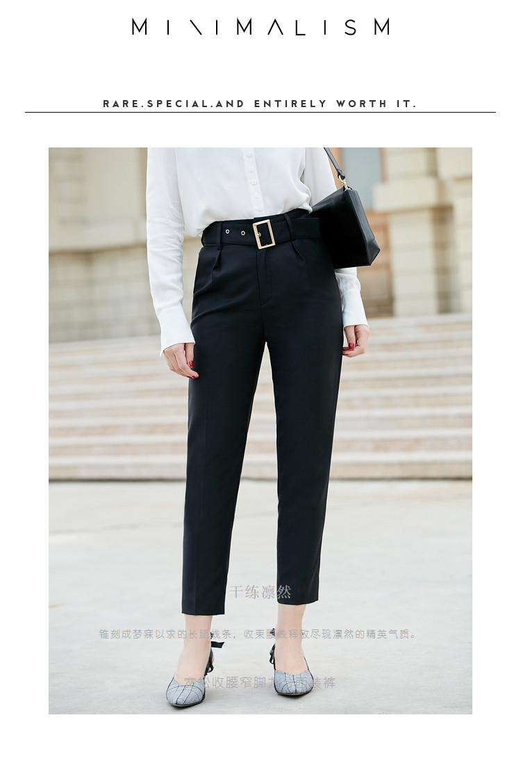 详情:腰带、九分锥形裤