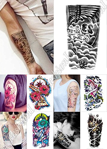 Temporary Tattoo Sticker set 5 Sheets 5 pcs Non-toxic Waterproof Removable BR ARM SET 1 Sticker Tattoo - FashionDancing