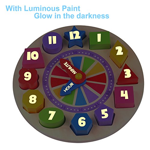 Wonderful material makes numbers and words on the clock toy glow in the darkness, ensuring kids to play with and tell time even in the dark.