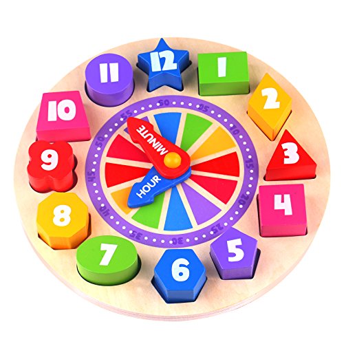 Features: Kids can match the colors, sort the shapes, count and solve the puzzle as they manipulate the color blocks and turn the hands, building cognitive and motor skills all the while.
