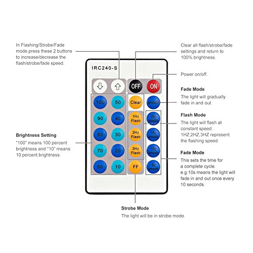 - DIVERSE COLORS & LIGHTING EFFECT: 4 colors optional(red, yellow, blue, green), adjustable 10 brightness levels and 3 modes(flash, strobe, fade), create more colorful and romantic atmosphere.