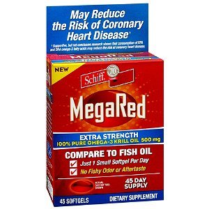 -. Title : Schiff MegaRed Extra Strength 100% Pure Omega-3 Krill Oil, 500mg, Softgels 45 ea