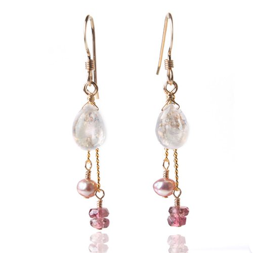-. Title : [ケイウンドウ]KEIUNDO ピンク トルマリン ムーンストーン 淡水 パール 14KGF ピアス 天然石 レディース 専用ケース付 keillo85