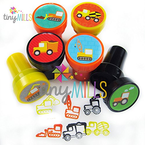 Have these construction trucks stampers as party favors for your next construction zone party! Our stampers are perfect for create your own greeting cards, scrapbooking and decorating stationery. Have this stamp assortment at home, in the classroom, for treasure chests, in your dental or doctor office, in art class, in church Sunday school. Our stamps are non-toxic, lead-free have passed all CPSIA and ASTM testing. Safe for children to use. 1.5 inches tall, 1 inch in diameterFeature