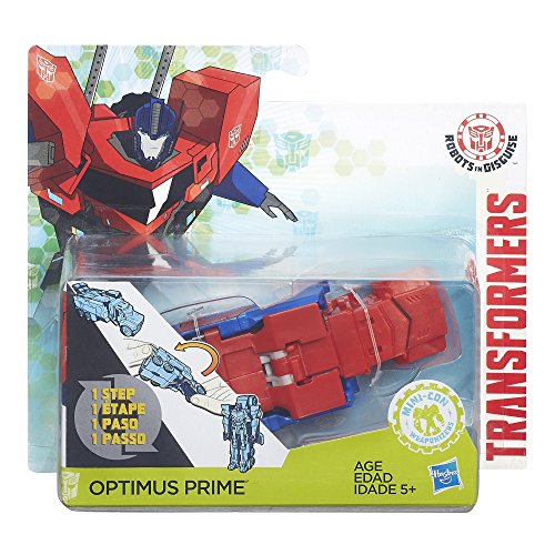 -. Feature : 1-Step Changers Optimus Prime figure / Works with Mini-Con Weaponizers figures (each sold separately) / Scan the figure to unlock content in the Transformers: Robots in Disguise app / Unlocks Optimus Prime and an axe in the app / Figure scale: 4.25 inches / Includes Optimus Prime figure