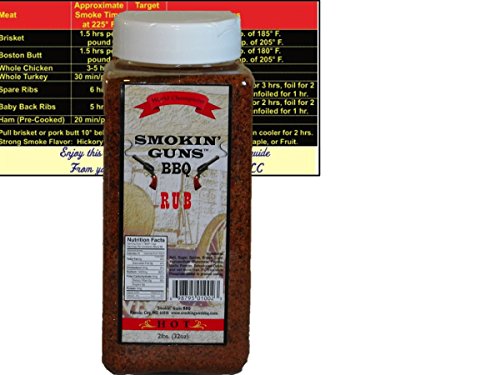 Smokin Guns BBQ Rub Hot Large 2 Pound (32 oz) Bottle with Complimentary Miniature Meat Smoking Guide Magnet Bundle