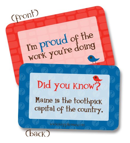 Lunchbox Love Notes for Kids by Say Please. 96 positive lunch notes and fun trivia for your child's school lunchbox, backpack, or binder. (Volumes 9-16)