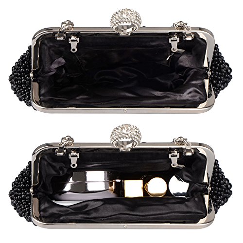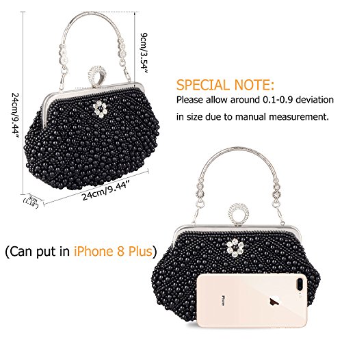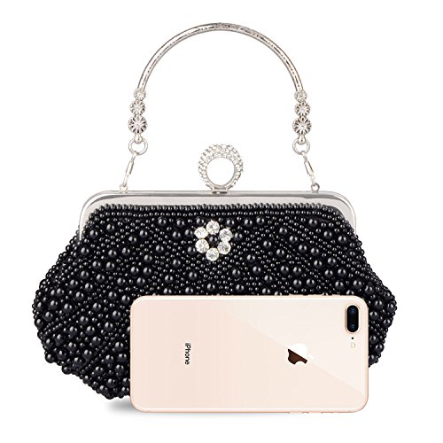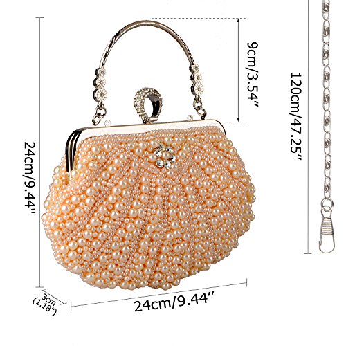 -. Feature : ❤ FASHION DESIGN - Unique shell styling, sparkling pearls and crystal overlays, inner layers of fine velvet, stylish chain straps. / ❤ SIZE - Approximate measurements: 9.4 x 7.1 x 1.2 inches / ❤ MULTIPURPOSE -As daily handbag, change Purse, shoulder bags or cross-body bags, Bride Handbag, Evening bag etc,MEET ALL YOUR NEED! / ❤ CAPACITY - You can easily fit your cell phone(fit for iPhone 6s plus), cards, money, car keys, small wallet, mirror, lipstick, some makeup etc. / ❤ OCCASION - Beautiful clutch bag is perfect for Everyday use, Weekend, Wedding, Evening party, Prom, Cocktail various parties, Night out or formal occasions and so on.