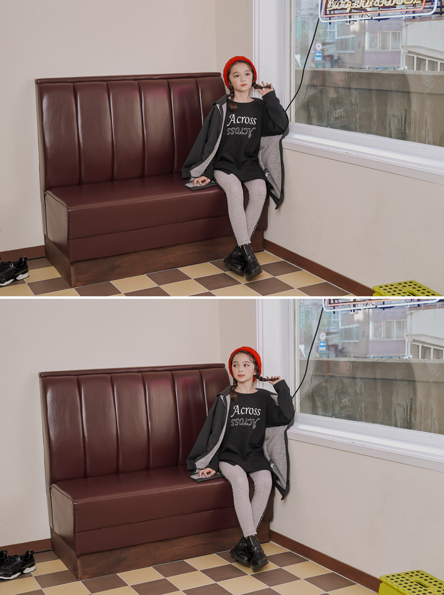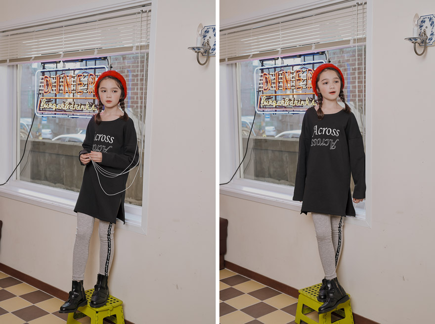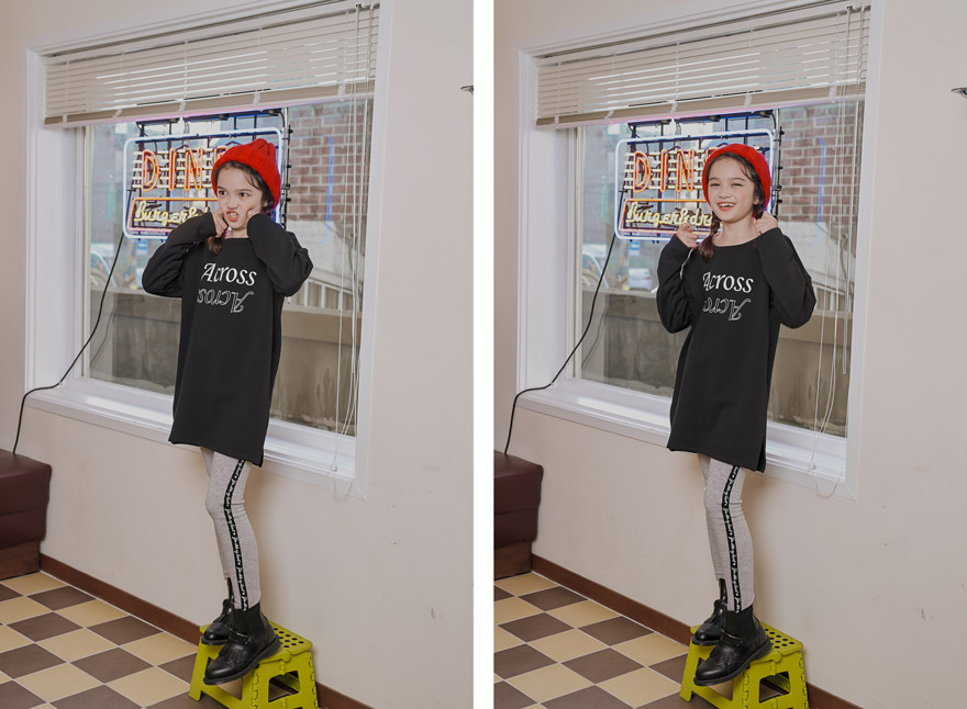 피팅한 여아의 모델은 140cm에 31kg으로 다소 마른체격이며,