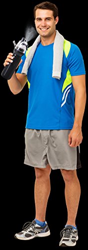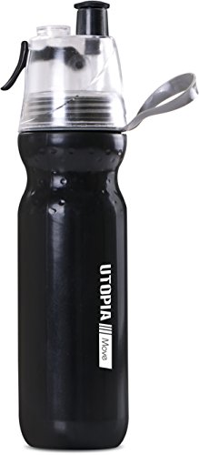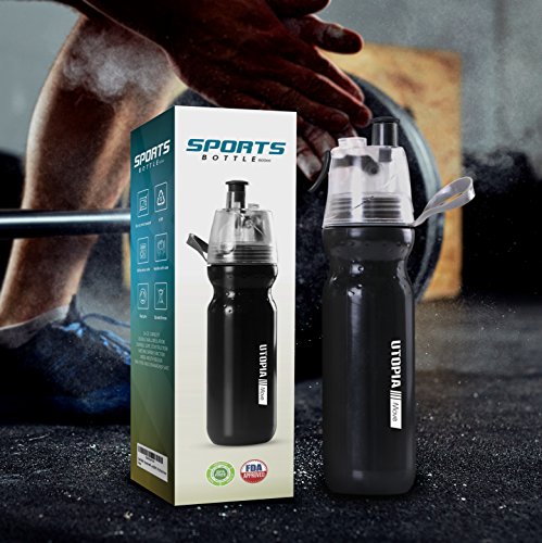 Sports Bottle Black 600ml - Mist Spray, Squeeze Water Bottle- BPA Free- Easy Grip - by Utopia Home